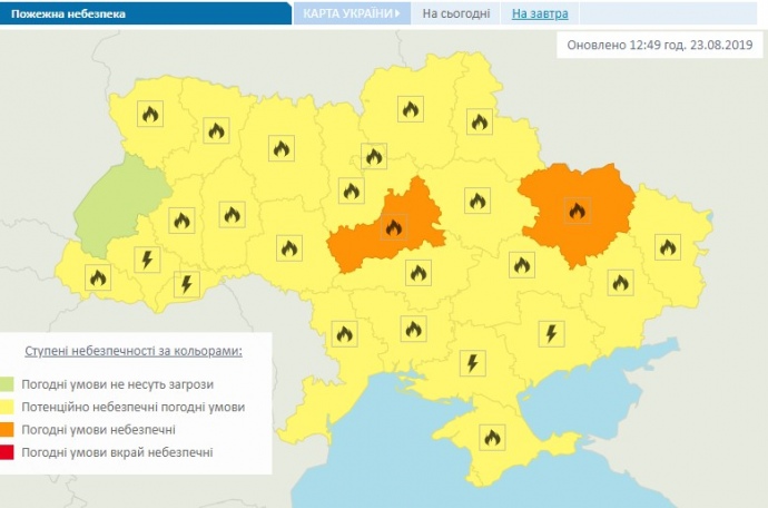 З 24 до 27 серпня в Україні очікується надзвичайна пожежна небезпека 5 класу.