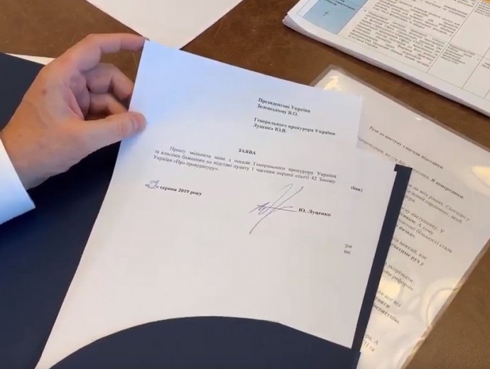 Генеральний прокурор Юрій Луценко написав заяву про звільнення з посади на ім’я президента Володимира Зеленського.