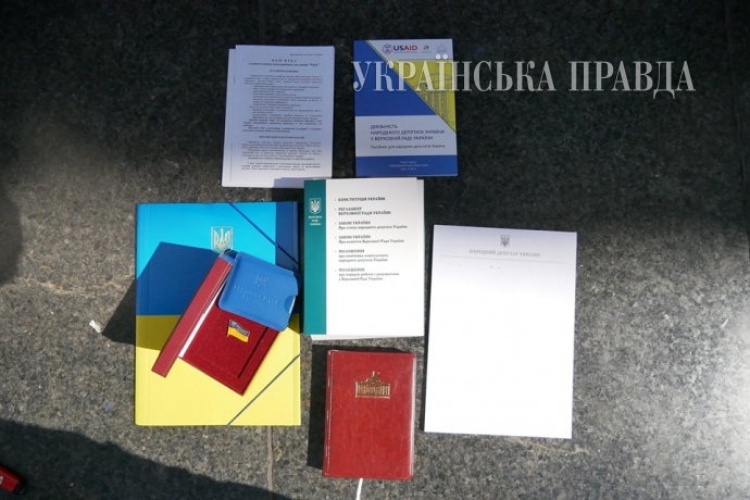Деталі: Кожному обранцю, після підписання присяги, видають футляр з двома знакачками з написом "Народний депутат України" та посвідчення.