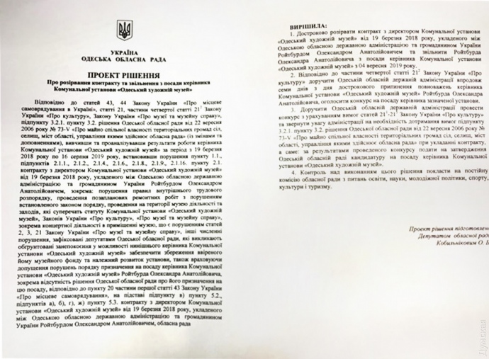 Одеська обласна рада достроково розірвала контракт з директором Одеського художнього музею, відомим художником Олександром Ройтбурдом.