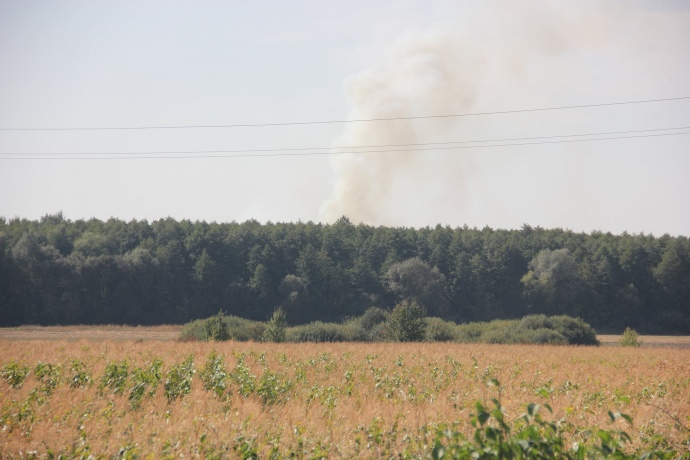 Дослівно Калинівська РДА: "На території 48 арсеналу виникло загорання сухої трави на разі є загроза виникнення надзвичайної події".