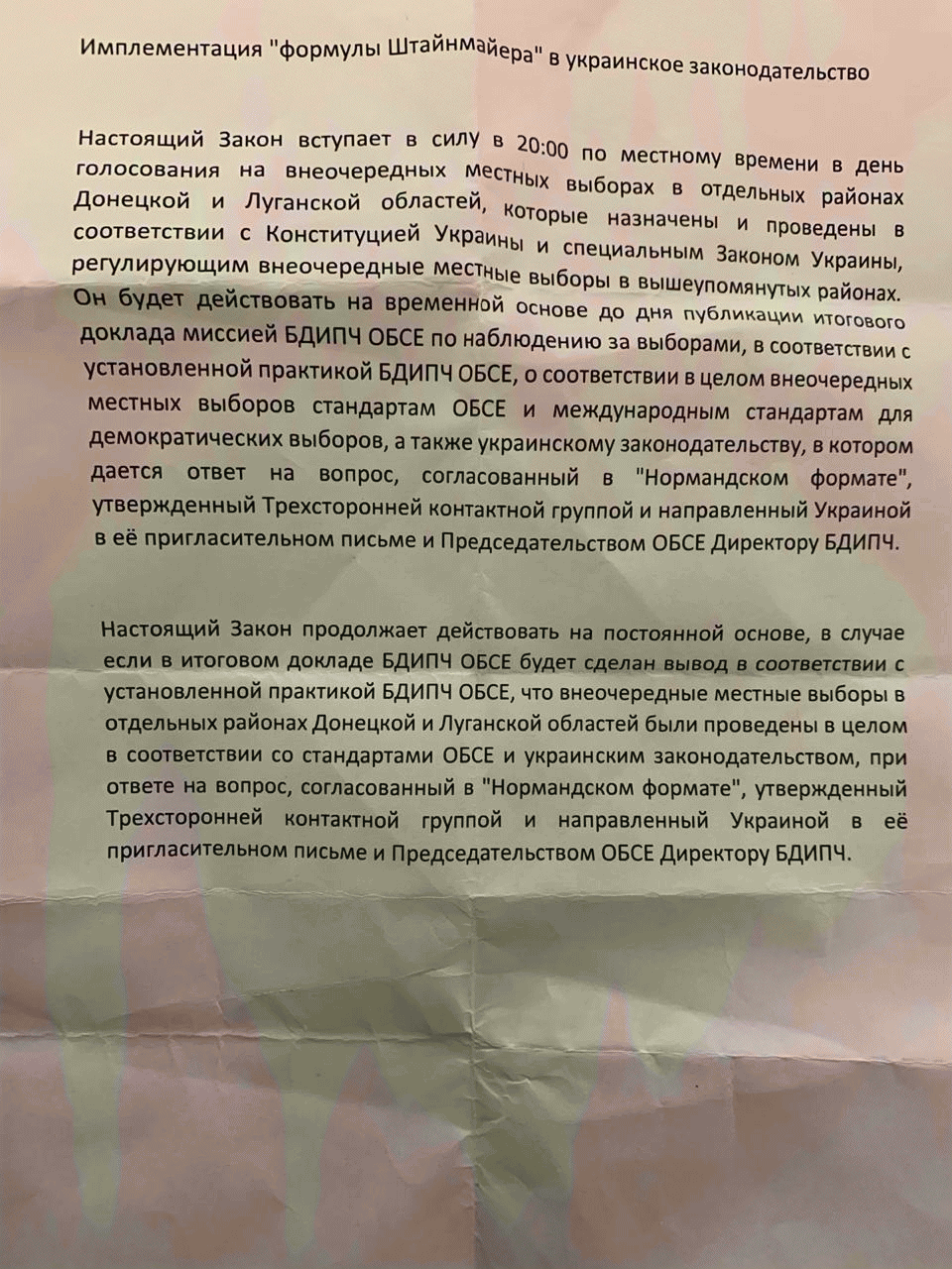 Документ займає пів сторінки і прописує імплементацію "формули Штайнмаєра" в українське законодавство.