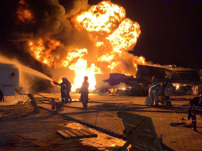 У ДержНС уточнили, що пожежа автоцистерн з паливом - бензином та дизелем - виникла о 21:55.