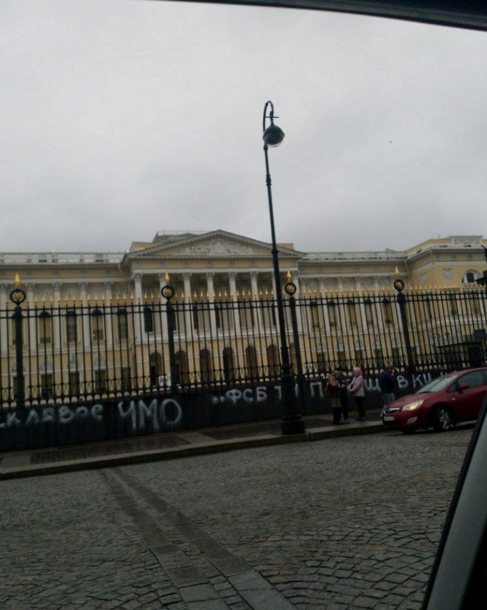 Деталі: Поганий запис з'явився під кованою огорожею Російського музею приблизно о 16:00 29 вересня.