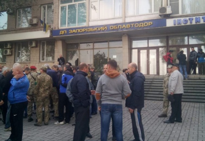 У Запоріжжі ветерани АТО почали безстрокову акцію протесту біля місцевого управління Державної служби з питань геодезії, картографії та кадастру, а також заблокували його вхід.