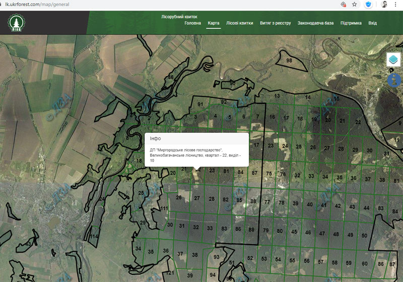 Також у пілотному режимі працює онлайн-карта рубок, яка наразі покриває лише три області – Чернігівську, Полтавську і Рівненську.