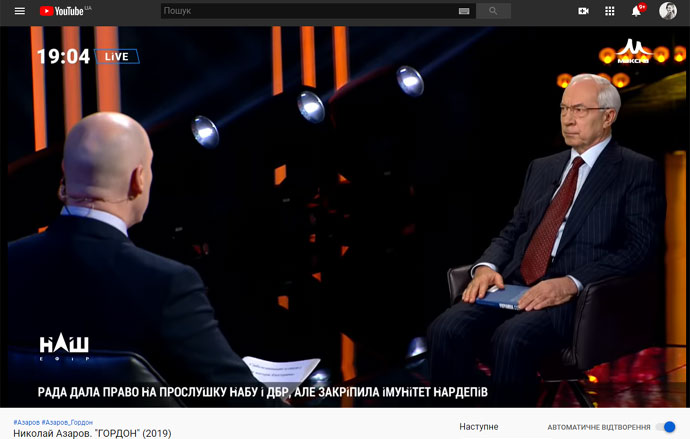 Деталі: Мова йде про передачу "Гордон" за 5 жовтня 2019 року, гостем якої був віртуальний Азаров.