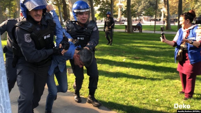 Затримання опозиціонерів у Баку почалися 17 жовтня, більшість з них звинуватили у дрібному хуліганстві і непокорі поліції і заарештували на терміни від 10 до 30 діб.