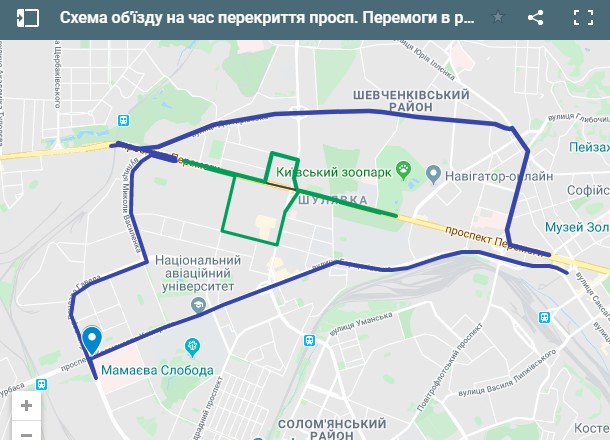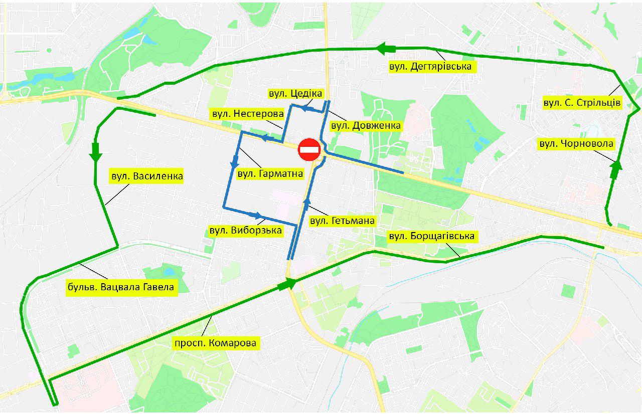 У КМДА надали схему можливого об’їзду перекритої ділянки.
