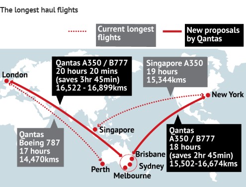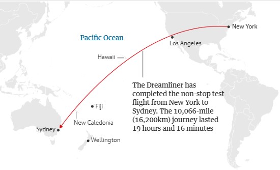 Австралійський авіаперевізник Qantas здійснив найдовший переліт без зупинок від Нью-Йорка до Сіднея, що тривав 19 годин 16 хвилин.
