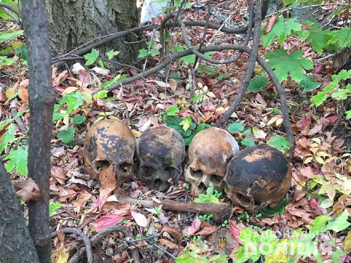 Потім він показав, де взяв черепи. Виявилось, що чоловік дістав їх зі старовинного склепу на кладовищі по вулиці Степовій. Там він і облаштував собі місце для ночівлі та тимчасово жив прямо у склепі. Співробітники поліції, які прибули на місце, виявили ще шість черепів, які громадянин розклав біля місця поховання.