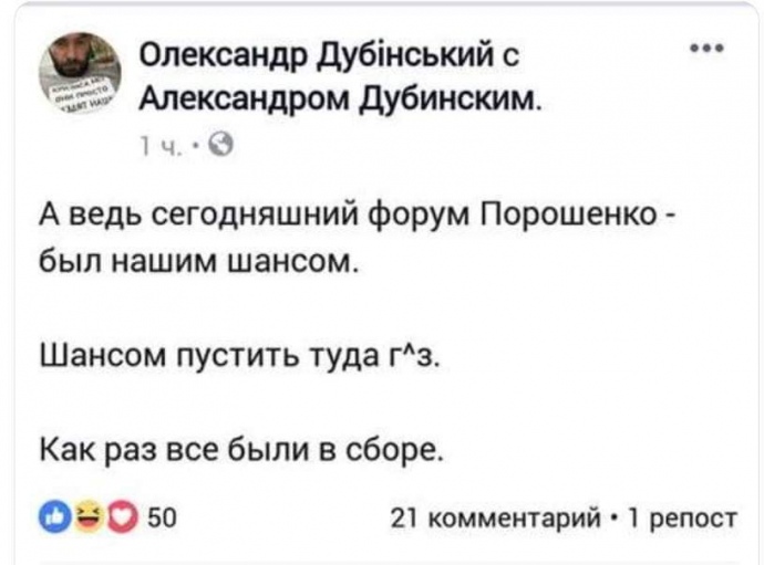 - Коментуючи висловлювання Зеленського народна депутатка "Євросолідарності" Софія Федина та волонтер Маруся Звіробій, наголошували на неприпустимості такої поведінки президента, звинувачували його у спробі капітуляції перед агресором та припускали, що може статися із Зеленським на передовій. "Там ненароком може взірватися граната, а ще там обстріли бувають.. Було би найкрасивіше, щоб це все сталося під час московського обстрілу, коли дехто в білій чи голубій сорочечці припреться на передову", – сказала зокрема Федина.