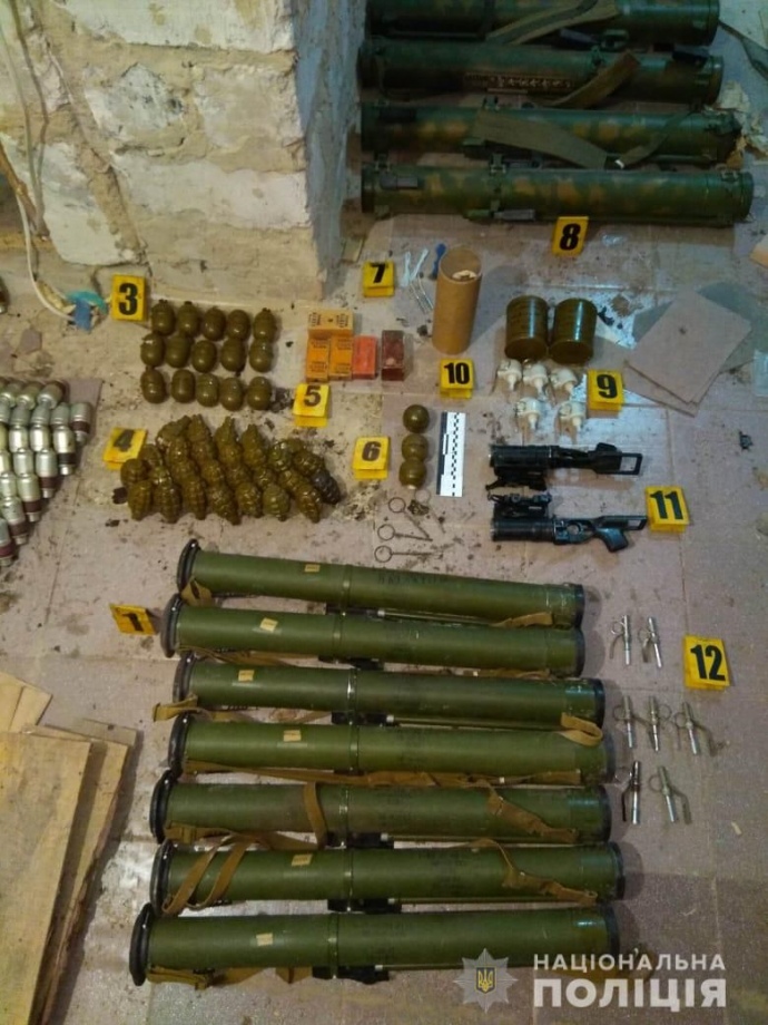 Серед вилученого – 130 гранат до підствольного гранатомету, 5 тротилових шашок, 7 ручних протитанкових гранатометів, електродетонатори, 6 піхотних вогнеметів "Шмель", фрагменти стрілецької зброї, автоматична зброя, рушниці, пістолети, велика кількість набоїв різних калібрів.