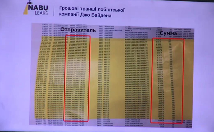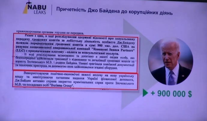 Деркач оприлюднив інформацію про те, що Байден старший отримав понад 900 тисяч доларів від "Burisma". Зокрема, розслідувачі повідомляють, що кошти він отримав через рахунки лобістської компанії "Rosemont Seneca Partners" за "консультативні послуги".