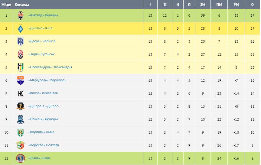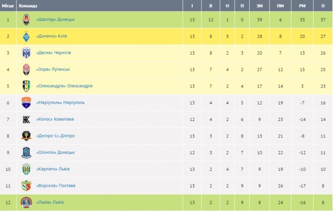 Інші матчі 13 туру завершилися з такими результатами: "Карпати" - "Шахтар" - 0:3, "Ворскла" - "Десна" - 0:1, "Дніпро-1" - "Зоря" - 1:4, "Олександрія" - "Маріуполь" - 3:1.