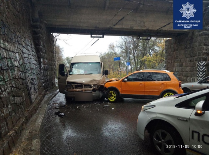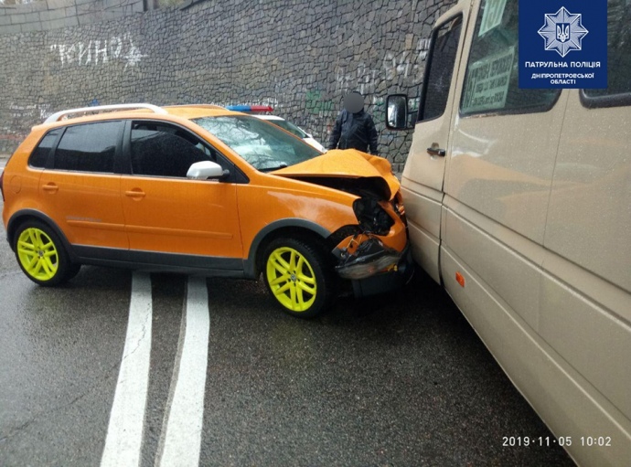 У Дніпрі водійка Volkswagen не впоралася з керуванням і втаранилася в маршрутне таксі, у результаті ДТП 7 осіб потрапили до лікарні.