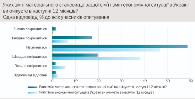 "26,8% тих, хто очікує погіршення ситуації, пов'язують цей процес виключно з поверненням в Україну - неважливо, в якому статусі, все одно погано. Не надихає людей і сценарій самовизначення або замороження конфлікту - 23,1% вважають, що економіка піде вниз із таким розвитком подій. Лише 6,8% жителів не довіряють російському об'єднавчому сценарію", - йдеться у результатах дослідження.