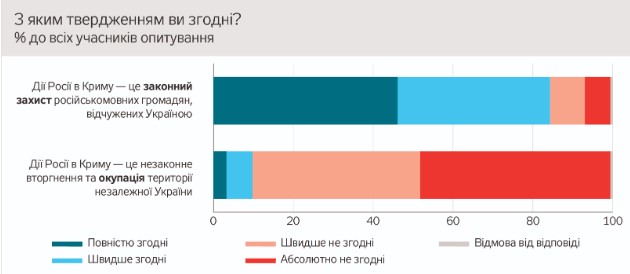 Таким чином, переважна більшість (89,7%) фактично підтримує захоплення Росією українського Криму.