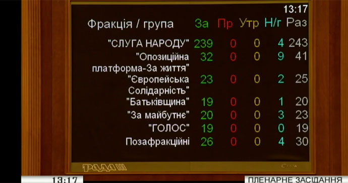 Пряма мова спікера парламенту Дмитра Разумкова: "Ставлю на голосування пропозицію про прийняття за основу проєкту закону про внесення змін до Податкового кодексу України щодо ліквідації корупційної схеми у сфері реєстрації інформації зі звітів про оцінку об'єктів нерухомості. Реєстраційний номер 2047-д. 378 за! Рішення прийнято.