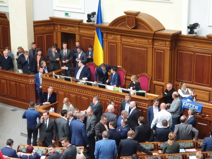 "Батьківщина" і ОПЗЖ гальмували засідання Ради: блокують трибуну і президію