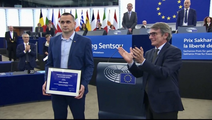 Українському режисерові колишньому політв'язню Кремля Олегу Сенцову вручили премію імені Сахарова.