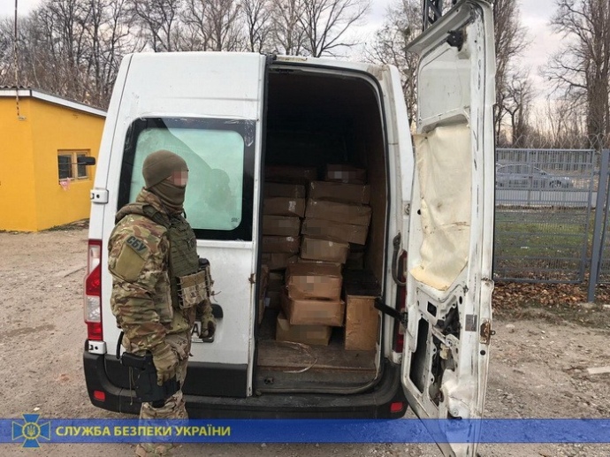 Співробітники СБУ затримали завантажені товаром автомобілі посередників під час чергового виїзду з однієї з колоній. З двох автомобілів вилучили майже 3 тонни вкрадених продуктів.