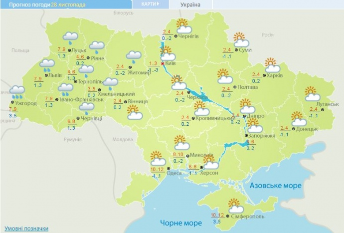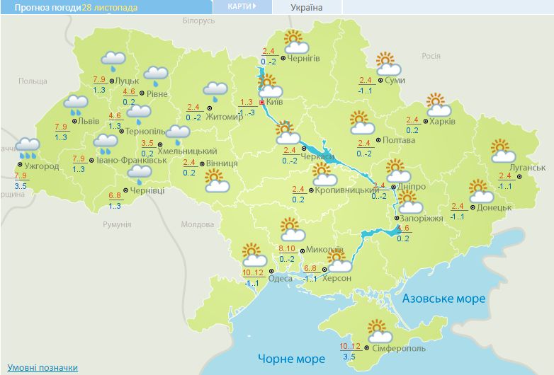 У четвер, 28 листопада, на більшій частині території України вранці туман, видимість 200-500 м.