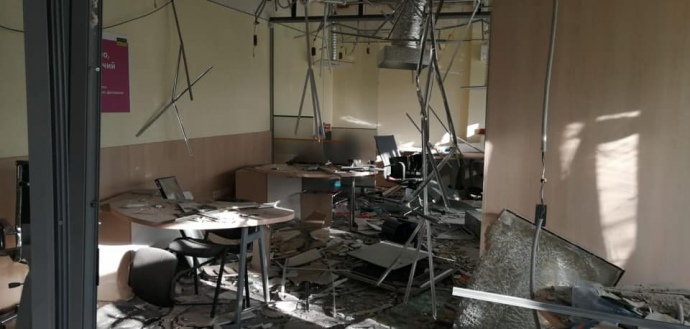 Пряма мова: "Відділення Ощаду в столиці на вулиці Ентузіастів практично вщент зруйноване. Сила вибуху винесла вікна, двері і зруйнувала приміщення практично повністю. Ціна вкраденого – близько 250 тисяч гривень. Ціна зруйнованого – мільйони. Ще рахуємо".
