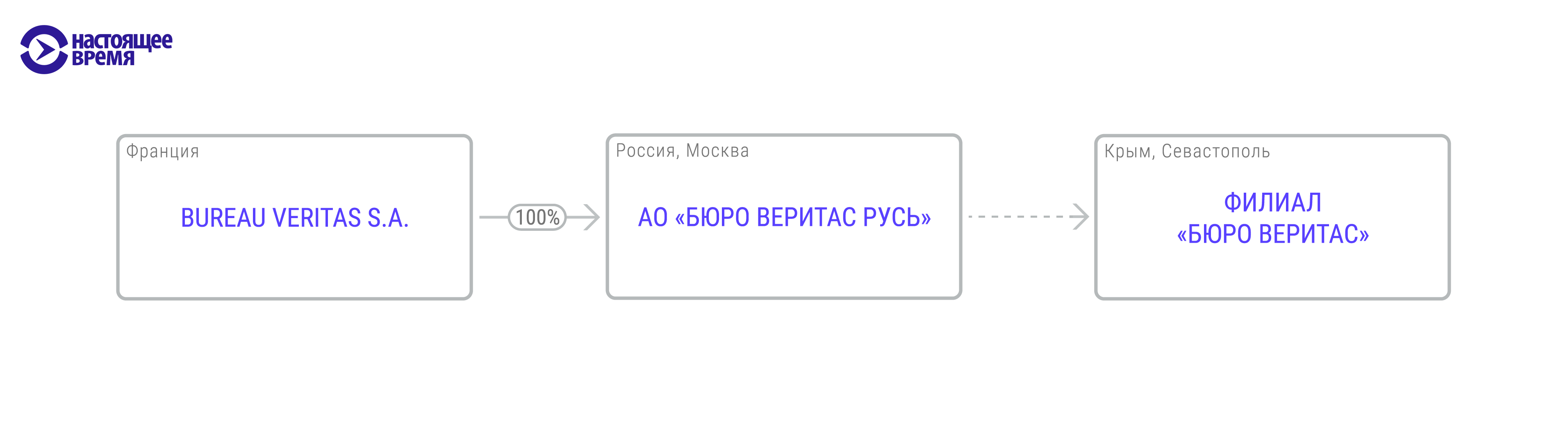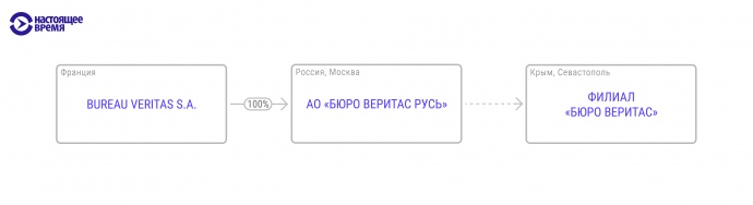 Французьке "Бюро Верітас" зареєструвало в Росії своє офіційне представництво ще в 1994 році, в Україні – у 1997-му. Після анексії Криму в липні 2014 го російське АТ "Бюро Верітас Русь" внесло зміни до держреєстру юросіб Росії – створила філію в Севастополі.