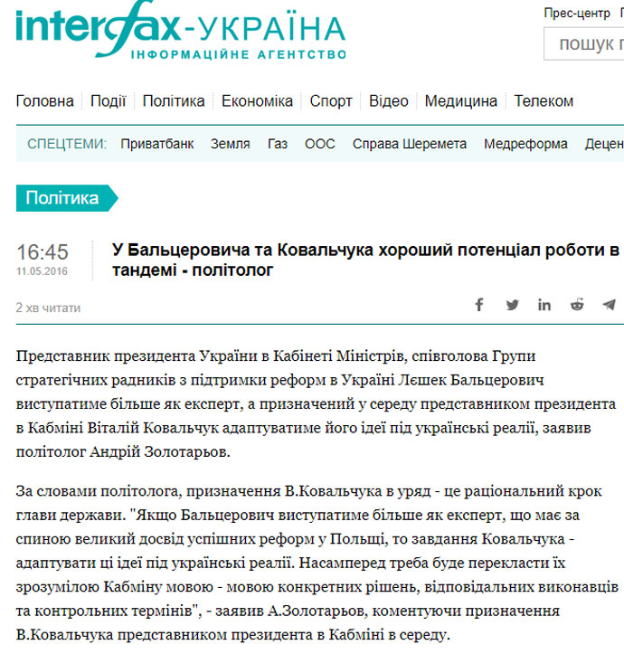 Згідно з ним, планували спочатку "злити" інформацію про призначення через лояльних політологів – Володимира Фесенка, Вадима Карасьова та Андрія Золотарьова, які мали б позитивно прокоментувати фігуру Ковальчука.