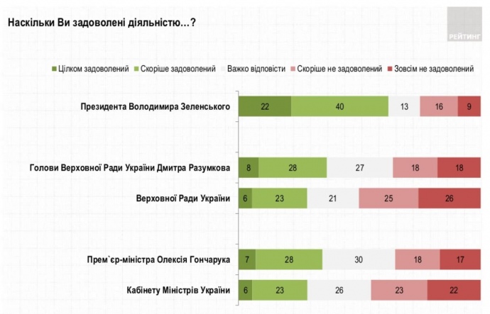 Діяльністю прем’єр-міністра Олексія Гончарука задоволені відносно більше, аніж роботою всього Кабміну.