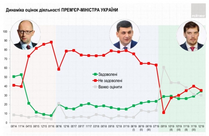 35% висловили задоволеність діяльністю очільника уряду (35% – невдоволені, 30% – не змогли оцінити).