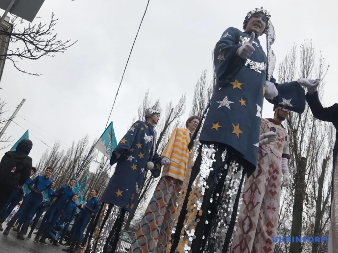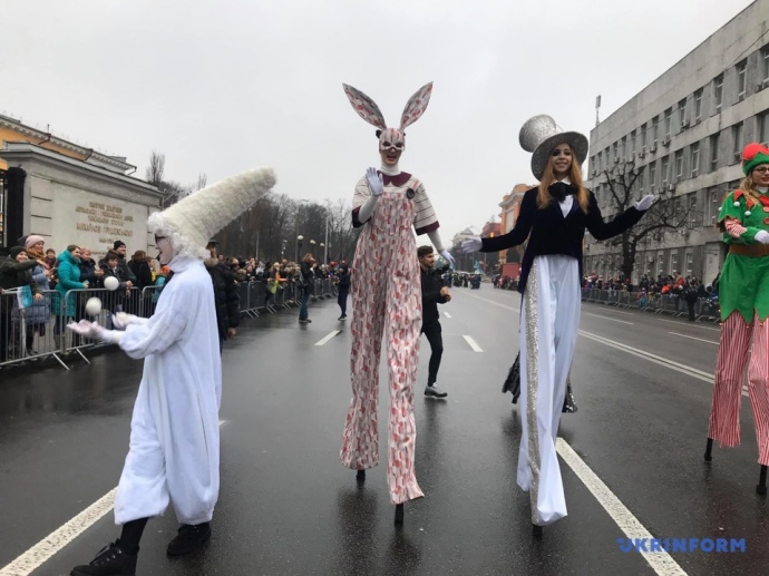 У Києві проходить перший Новорічний парад, у якому беруть участь близько сотні костюмованих персонажів.