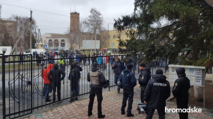 У Каховці тривають протести під управлінням поліції через резонансне убивство місцевого жителя.