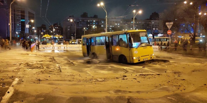 Пряма мова: "На Антоновича 174 стався прорив теплотраси, утворилася яма два на два метри. Туди задніми колесами потрапило маршрутне таксі. Рятувальники евакуювали чотири людини…