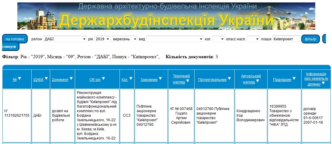 Деталі: Згідно з сайтом Держархбудінспекції, ДАБІ видала дозвіл на будівельні роботи на об’єкт "Реконструкція майнового комплексу – будівлі "Київпроект" під багатофункціональний комплекс по вул. Богдана Хмельницького, 16-22 у Шевченківському районі Києва" у вересні 2019 року.