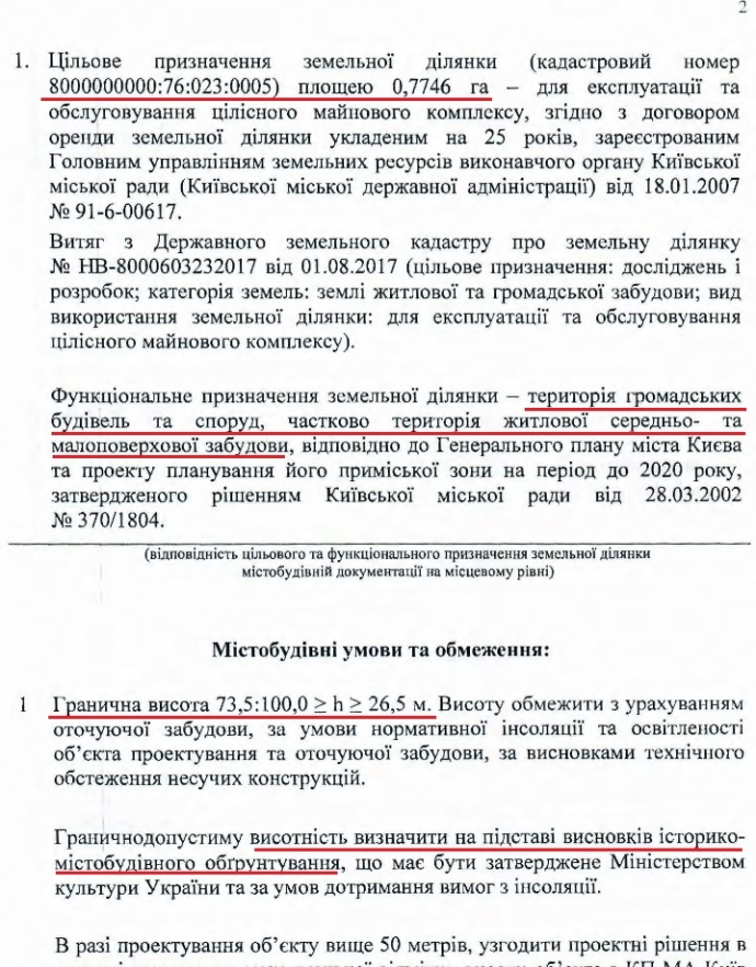 За даними джерел "Наших грошей", при отриманні дозволу ДАБІ забудовник не мав передбачених містобудівними умовами та обмеженнями висновку спеціально уповноваженого органу охорони культурної спадщини щодо проектної документації, історико-містобудівного обґрунтування для проектування об’єкта будівництва, а також погодження проектної документації Департаментом культури КМДА.