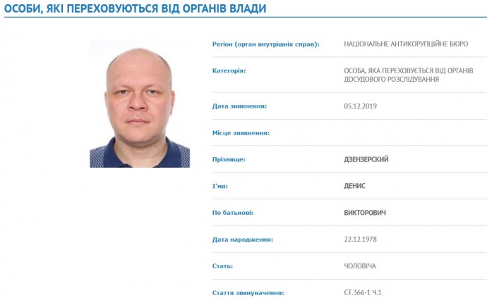 Деталі: Як випливає з повідомлення, Дзензерський переховується від слідства з 5 грудня 2019 року. Його підозрюють у недекларуванні 4,7 мільярда гривень фінансових зобов'язань.