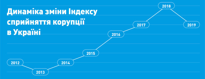 Україна у 2019 році втратила два бали в рейтингу сприйняття корупції у порівнянні з 2018 роком і повернулася на рівень 2017 року, посівши 126-те місце зі 180.