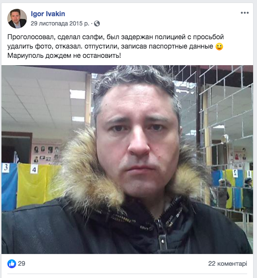По-перше, на сторінці Івакіна зазначено, що чоловік мешкає в Маріуполі, звільненому ще влітку 2014 року. Крім того, з цієї ж сторінки випливає, що в червні 2014-го, коли Івакін мав би обіймати посаду в ОРДЛО, він перебував у Києві. Вже у грудні – публікував фото з Маріуполя і писав, що у Донецьку не був з вересня.