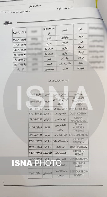 Іранське агентство новин ISNA опублікувало список пасажирів літака МАУ, який зазнав аварії під Тегераном.