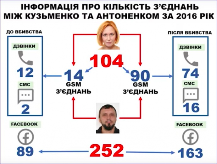 Після 20 липня 2016 року встановлено 90 з’єднань: 16 SMS-повідомлень та 74 дзвінки. Також впродовж 2016 року зафіксовано 252 повідомлення в мережі Facebook, у тому числі 89 – до вбивства.