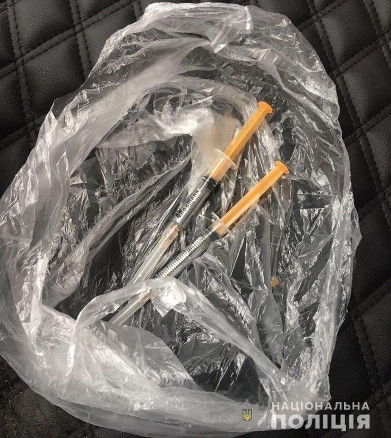 Крім того, правоохоронці виявили два підозрілі предмети, імовірно – гранати Ф-1, електродетонатори, балон і шприци з речовиною, схожою на ртуть.