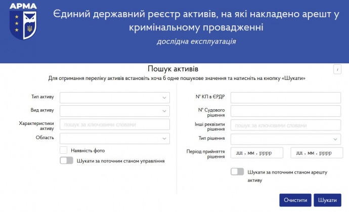 Агентство з розшуку і менеджменту активів відкрило доступ до Єдиного реєстру арештованого майна, до якого наразі внесено інформацію про понад 2 тисячі активів.