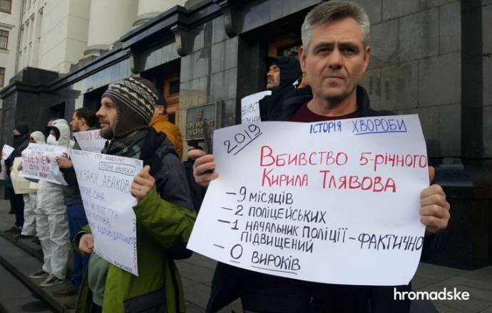 Близько 100 людей вийшли під Офіс президента на акцію проти міністра внутрішніх справ Арсена Авакова.