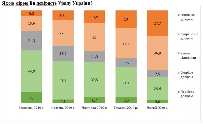 Уряду у вересні 2019 р. довіряли 57% респондентів, не довіряли ˗ 22%, у лютому 2020 року ˗ відповідно 28% і 64,5%.