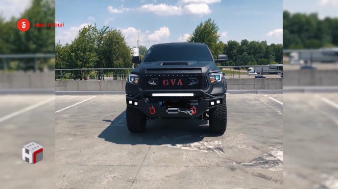 Також на неї оформлені "Лексус" (80 тисяч доларів) та "Тойота Тундра". Остання має тюнінг, персоналізований під СБУшника Герсака – салон, решітка бампера і навіть індивідуальні номери машини промарковані літерами GVA, що відповідає ініціалам Герсака Віталія Анатолійовича.