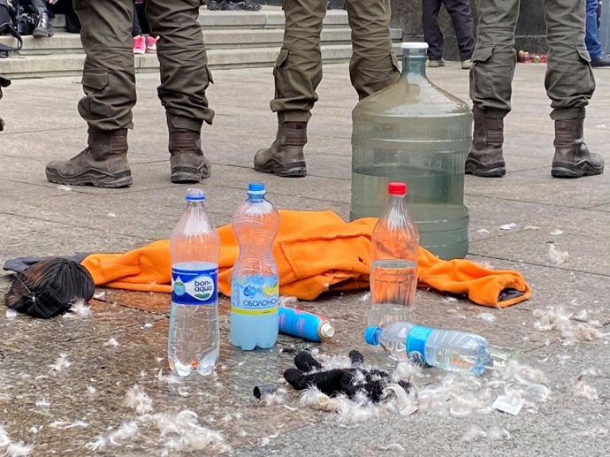 Дослівно поліція: "За словами свідків, чоловік облився невідомою речовиною та підпалив себе. Правоохоронці, котрі забезпечували правопорядок під час акції, загасили полум'я та надали потерпілому первинну медичну допомогу".