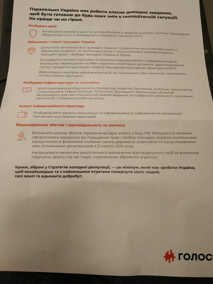 Джерело: трансляція партії "Голос" із презентації та план "Голос розуму: стратегія холодної деокупації окупованих районів Донбасу та Криму"