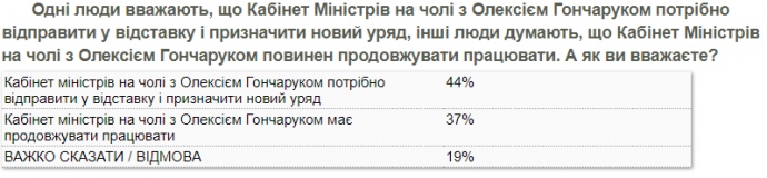 37% думають, що уряд на чолі з Гончаруком ще має працювати.